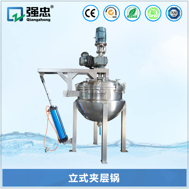 夹层锅由锅体、支架等部分组成,锅体是由内外球形锅体组成的双层结构形式,夹层中通入蒸汽或者导热油作为介质进行加热;夹层锅底部可装法兰出料口,物料蒸煮完毕可直接出料,方便作业;锅体内壁过渡段均采用圆弧过渡,无卫生死角,易清洗;锅体内镜面抛光处理,符合卫生规范要求。夹层锅可采用固定式结构或可倾斜式结构,同时根据客户要求可增加搅拌装置和乳化装置。