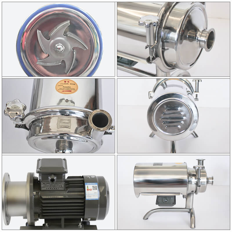 不锈钢卫生泵(又名奶泵、饮料泵)属单级、单吸式卫生泵,适合输送牛奶、饮料、酒等各种液体。它是食品、化工、医药等行业不可缺少的输送设备,特别适合于应用在管式杀菌、酸奶持温设备、CIP清洗等阻力较大的系统中。叶轮安置在泵壳里面,它和泵轴一起旋转,叶轮刀片以动能和压能的形式将能量传达给流体。该泵不可反向旋转,正确的旋转方向是顺时针,从电机后面可看出泵的旋转方向。
